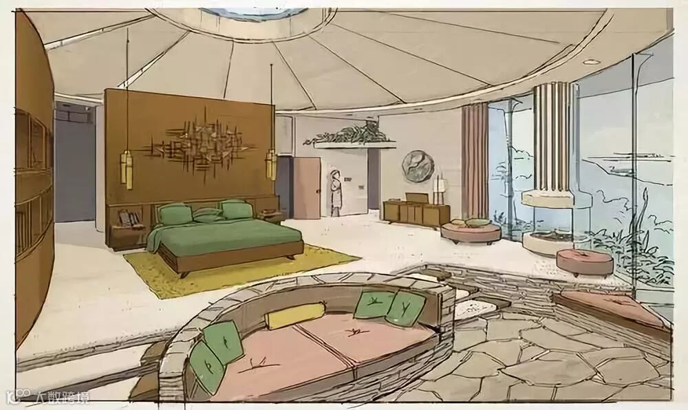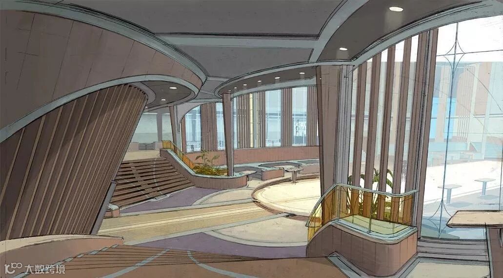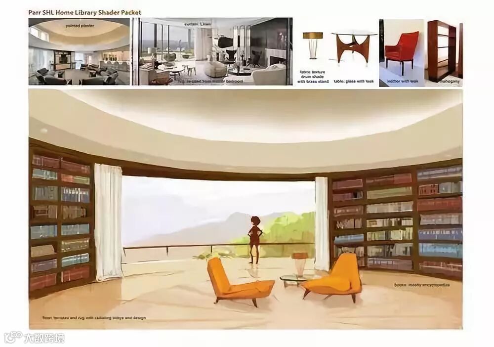 说到这里,不得不讲讲电影中一些精妙的细节设计了,这是数十位艺术家长期不懈地付出艰辛劳动才最终达成的。例如,鲍伯一家的新房子,现在,他们住在一座 3.8 万平方英尺的新房子里,里面充满了中世纪未来主义建筑风格。