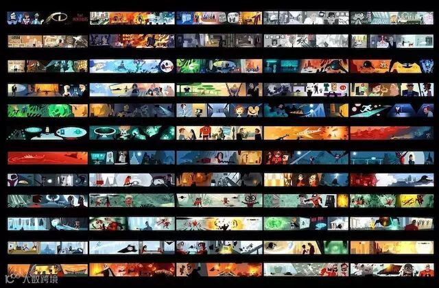 当然更好的画面呈现也少不了前期故事版的准备,故事板由故事艺术家绘制,以便在剧本写入时预先可视化电影。编辑团队将它们并排放置,以传达场景的节奏,并对故事的展现方式有一个粗略的了解。整部电影总共创作了 52,725个故事板。