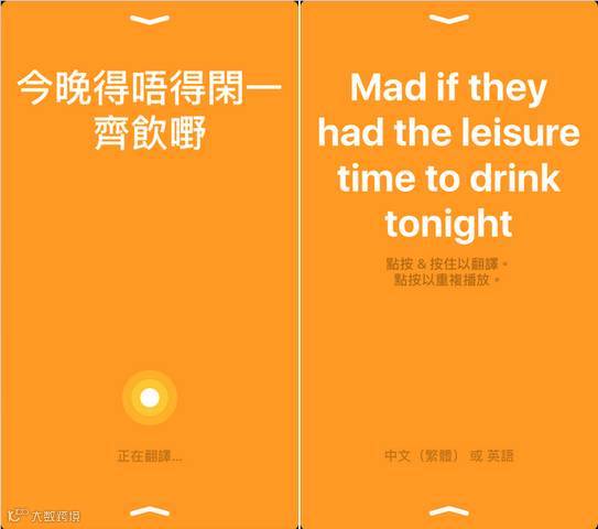 系统对粤语语音辨识同样灵敏且准确,就连口语白话字也能清楚显示出来。像以下这句“今晚得唔得闲(闲)一齐饮嘢”意思是“今晚有没有空一起喝个东西”, 但翻出来的英文句子马马虎虎。