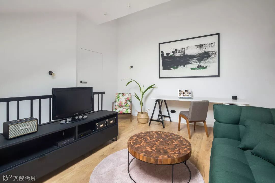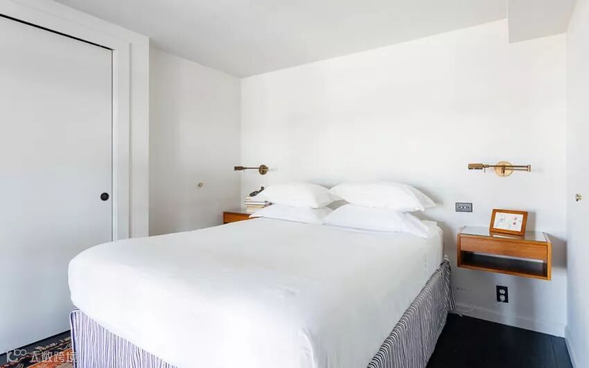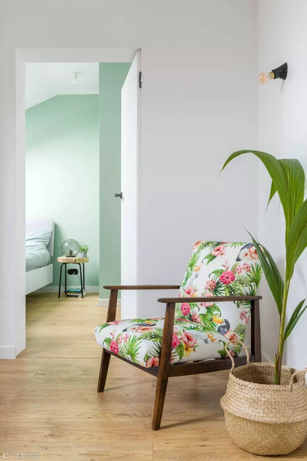 卧室的颜色则不同于公共空间的黑酷,薄荷绿还是用得相当小清新的,很适合夏天。
