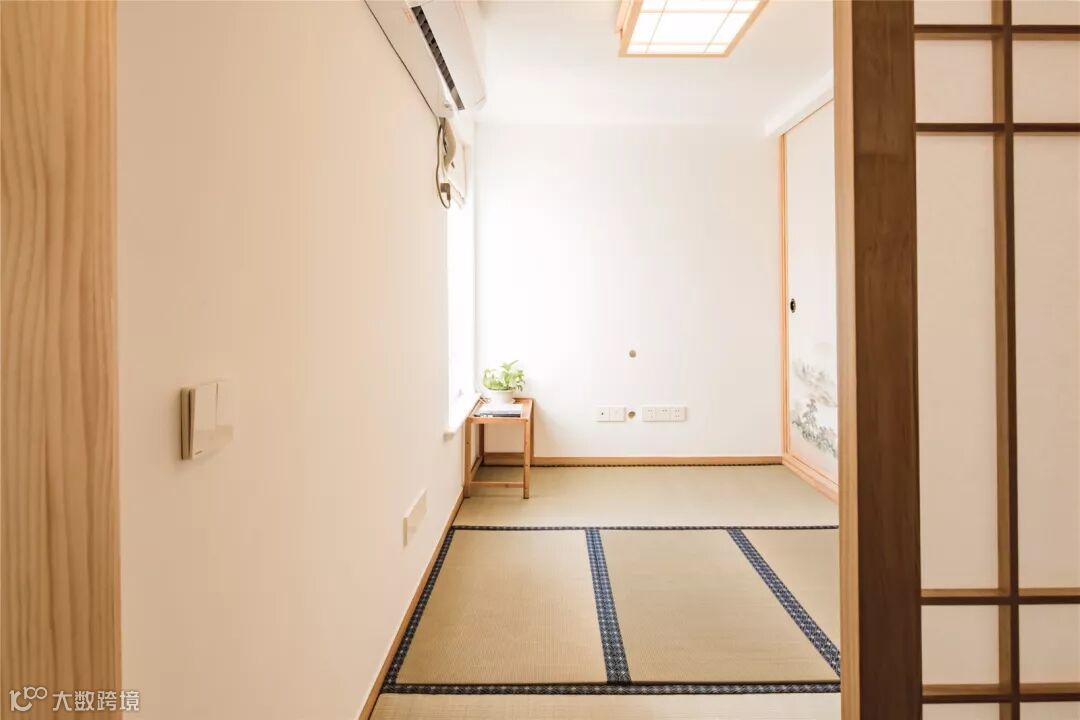 客卧是榻榻米,衣柜门设计了一副朦胧意境的山林画。打造了一隅淡雅与静谧并存的禅意空间。