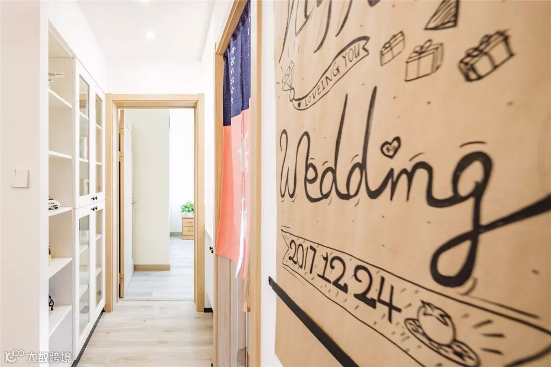 过道的左侧是一整面墙的收纳柜,这收纳能力杠杠的。