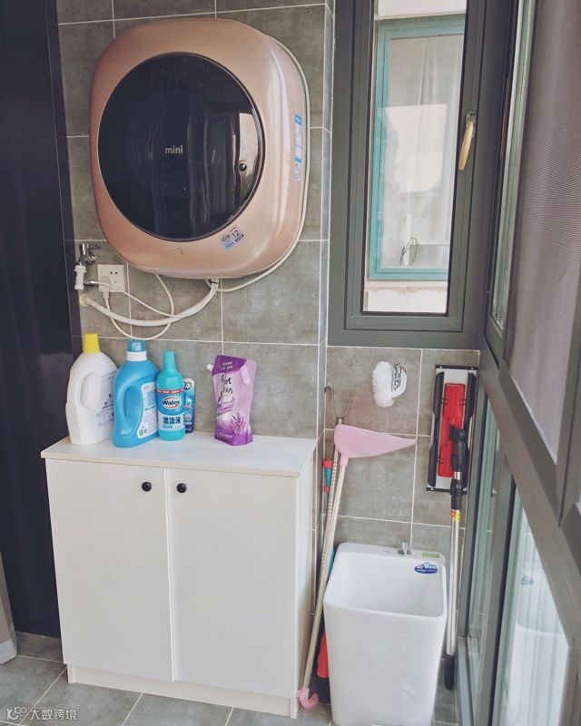 阳台设计了一个拖把池,方便家里的卫生清洁。