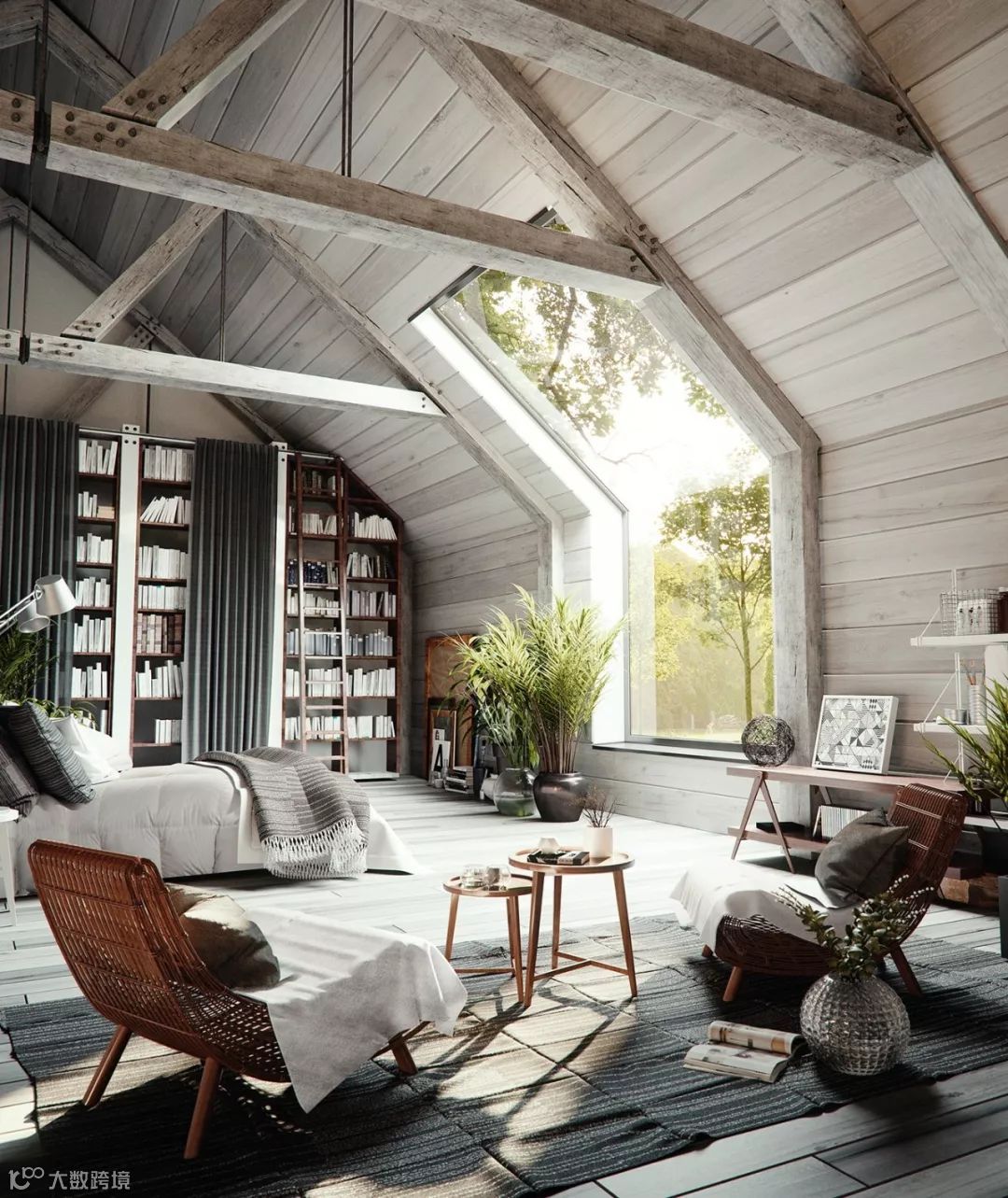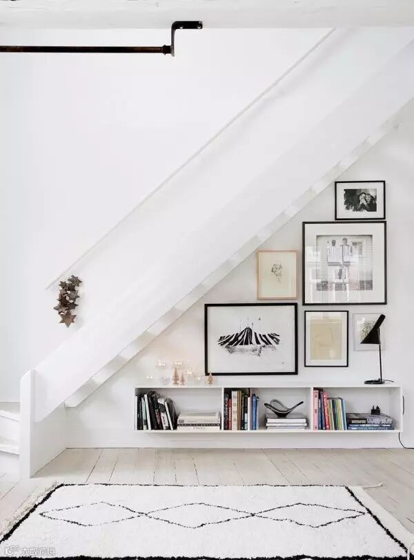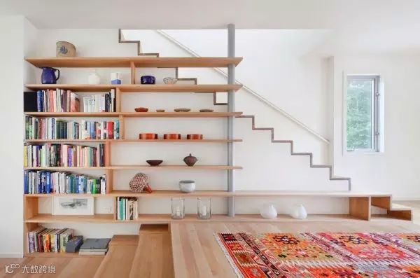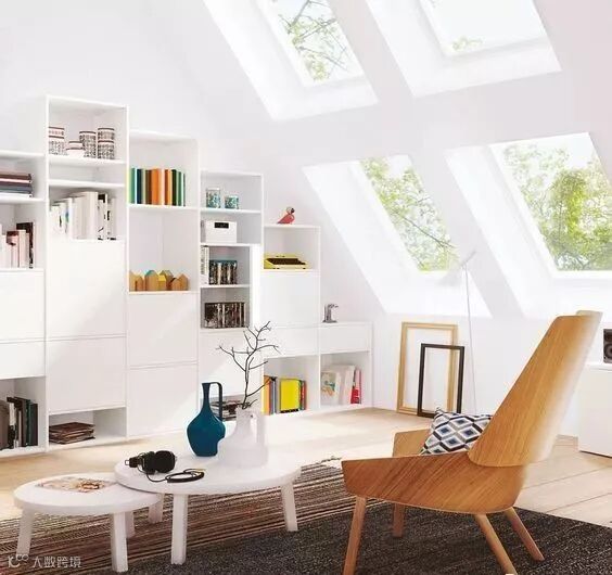 如果主人计划将不规则的房间改造成书房,可根据墙的高度做一个阶梯书架,渐渐下落的阶梯和倾斜的墙面能够形成漂亮的弧线,空间会变得开阔起来。