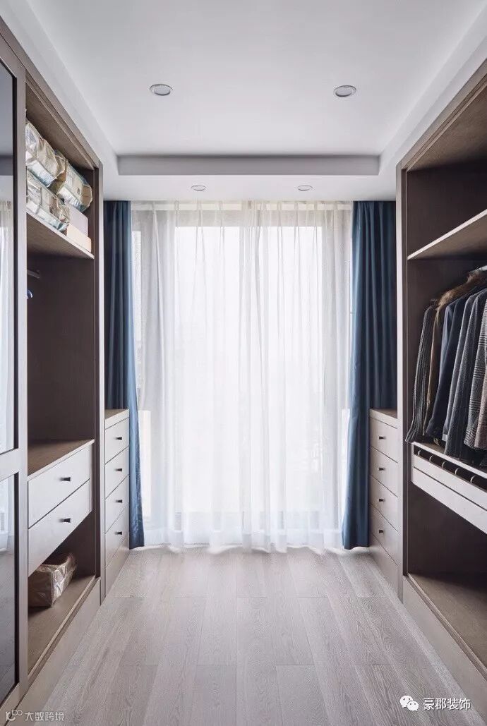 ①主卧打造了开放式衣帽间,让储物和活动区分开。