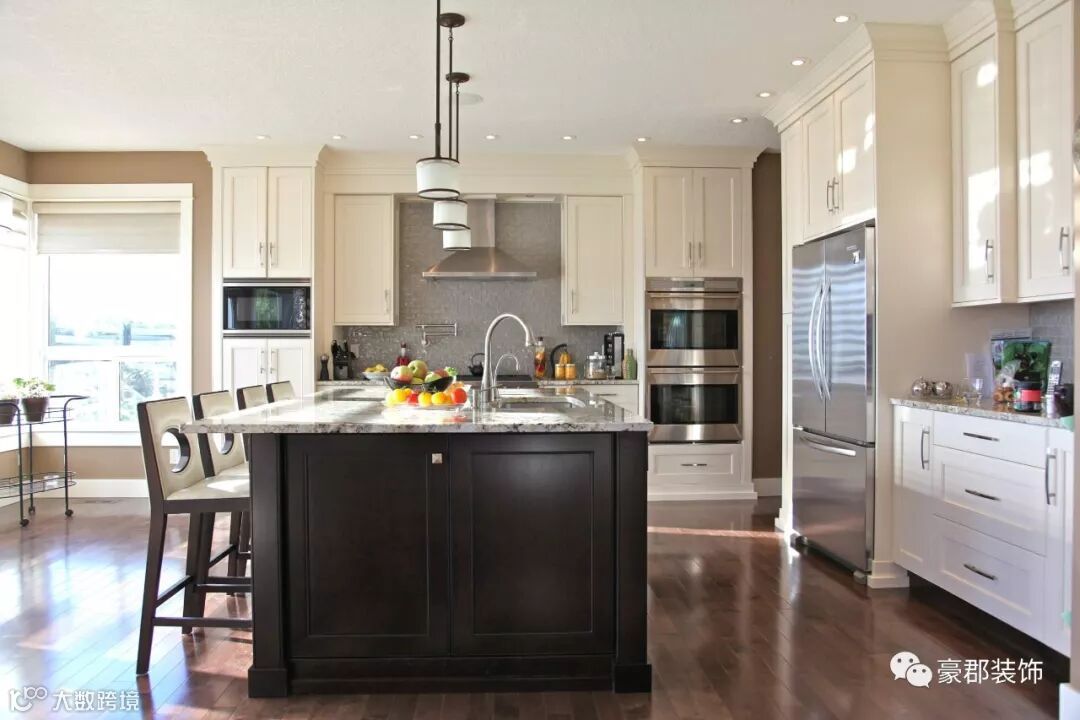面积大的户型,通常都会采用这两种设计(中岛型豪宅标配),它在收纳、操作的时候优势十分明显,是最理想的厨房布置方式。