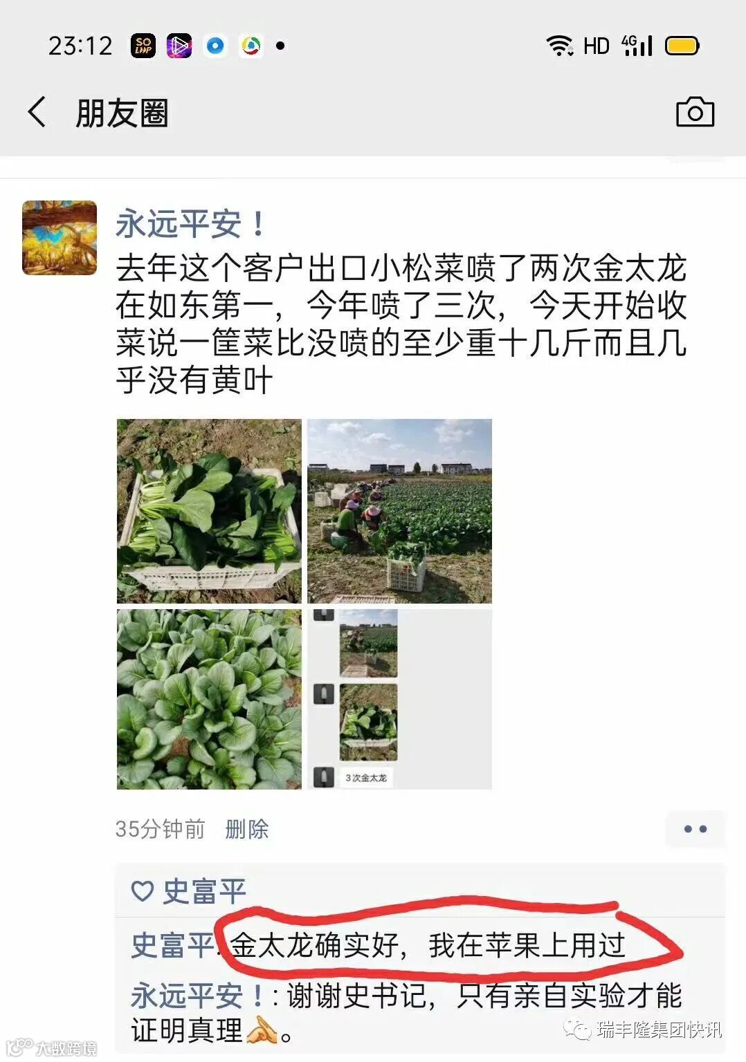 去年这个客户出口小松菜喷了两次金太龙在如东第一,今年喷了三次,今天开始收菜说一筐菜比没喷的至少重十几斤而且几乎没有黄叶!