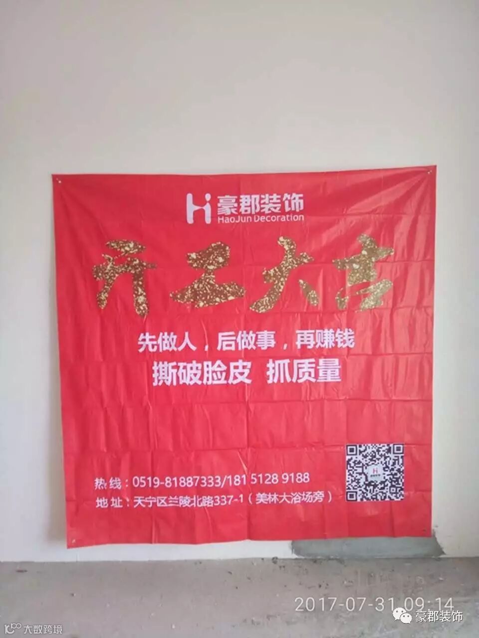 2017年7月31号,御庭园业主孙总家装修开工,设计师吴浩深及工程部等代表豪郡装饰对这一项目的正式开工表示最热烈的祝贺!恭祝孙总家开工大吉感谢您一家人对我们的信任,对公司的认可!