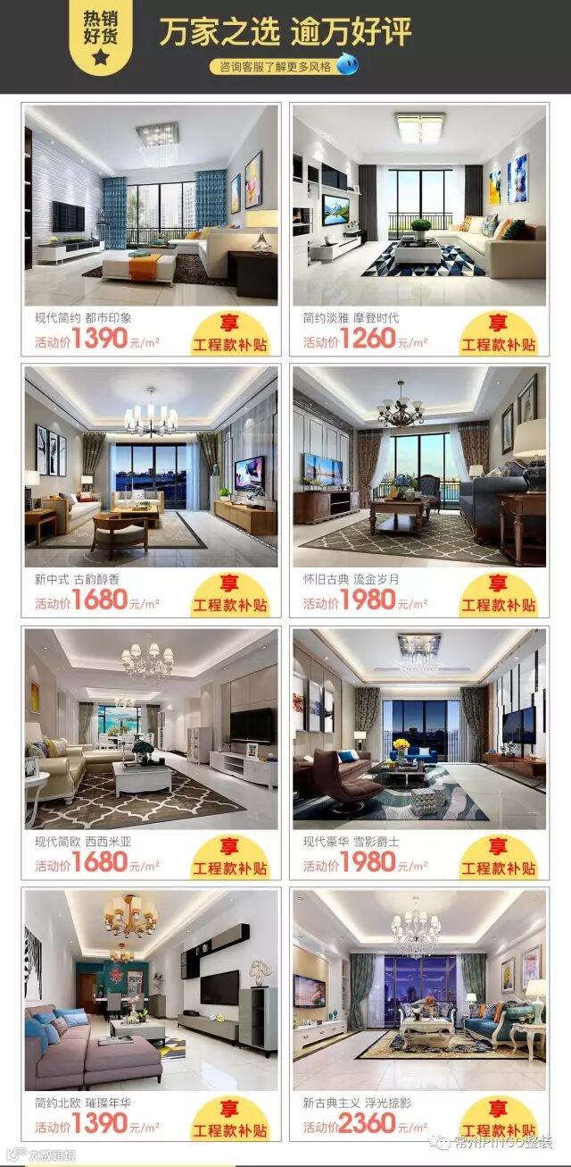 省时:设计前置化、已提前设计好12套风格套餐效果图样板房照片,所见即所得,看到什么装到家里就是一样。