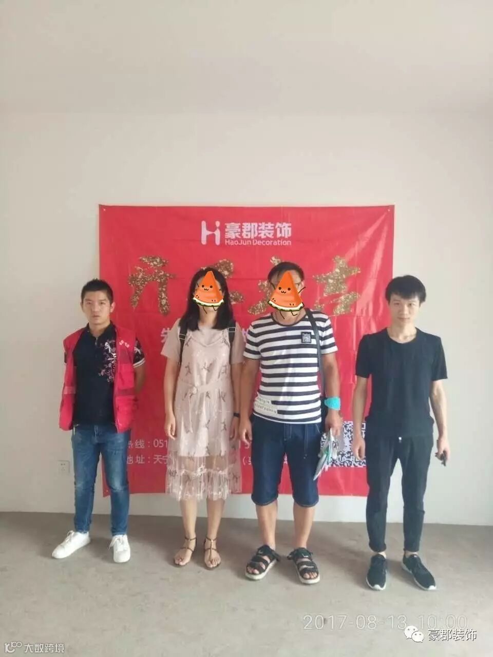 2017年8月13号,阳光龙庭薛先生家装修开工,设计师唐杨樊及工程部等代表豪郡装饰对这一项目的正式开工表示最热烈的祝贺!恭祝薛先生家开工大吉感谢您一家人对我们的信任,对公司的认可!