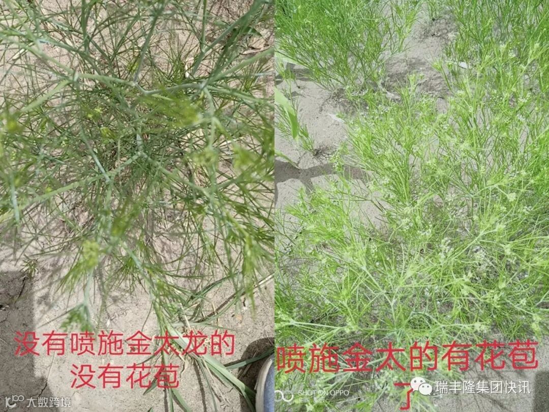 市场部的孜然喷施了金太龙追肥宝的效果明显,对比没有使用金太龙的孜然,喷施金太龙的孜然花都开了,没喷的还没有开花!烧烤天儿即将到来,喷施金太龙的孜然是标配!