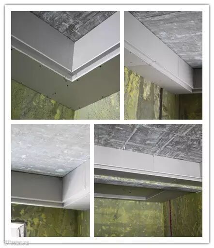 吊顶边角整版剪切,轻钢龙骨配合木龙骨。钉眼黑水泥防锈。轻钢龙骨隔墙加九厘板加隔音棉。