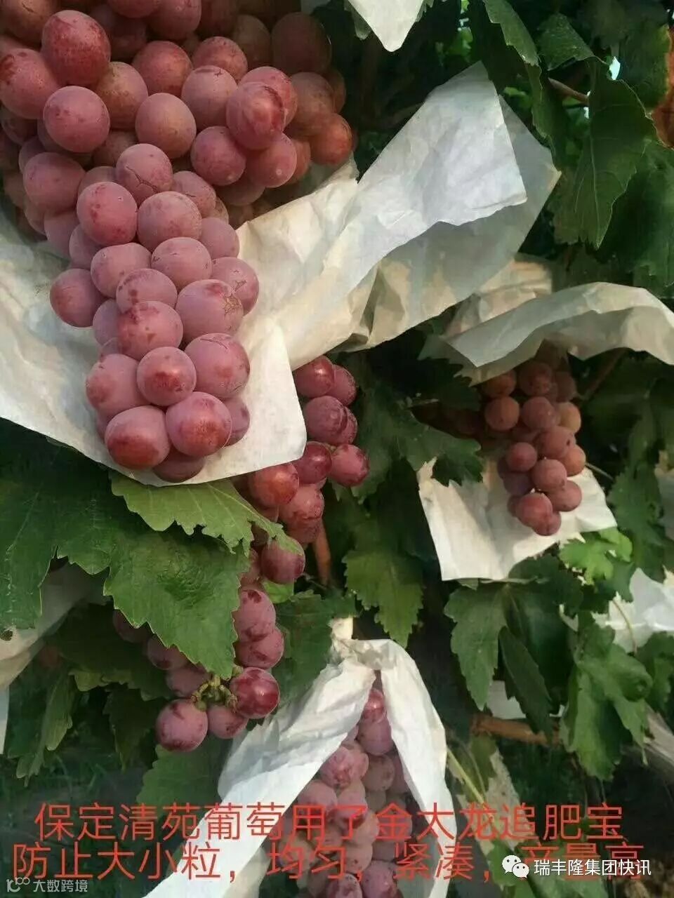 全程使用金太龙4次的葡萄,果穗大,果粒均匀,果粉好,色泽度好,甜度高,对照增产明显!