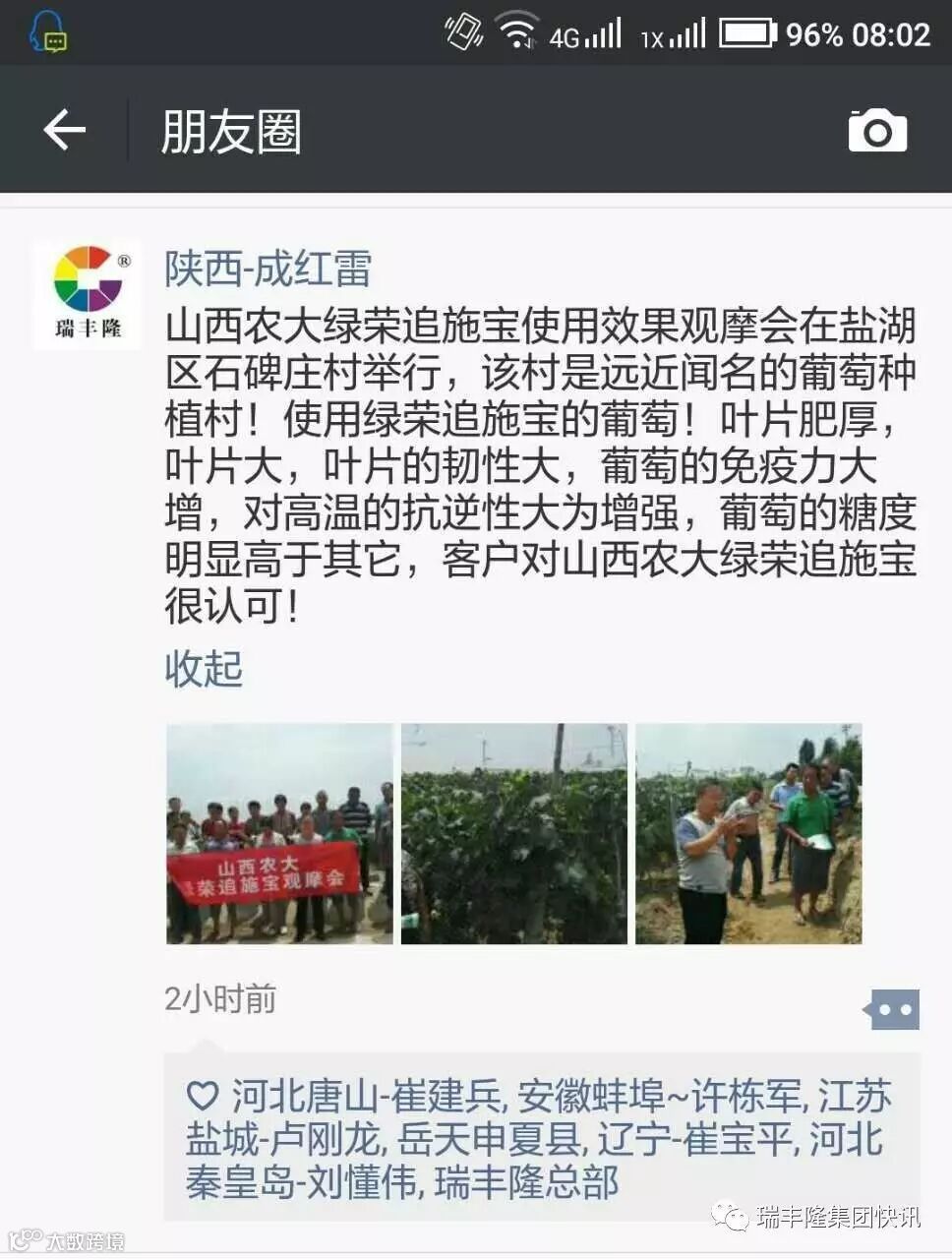 山西农大绿荣追施宝使用效果观摩会在盐湖区石碑庄村举行,该村是远近闻名的葡萄种植村!使用绿荣追施宝的葡萄!叶片肥厚,叶片大,叶片的韧性大,葡萄的免疫力大增,对高温的抗逆性大为增强,葡萄的糖度明显高于其它,客户对山西农大绿荣追施宝很认可!