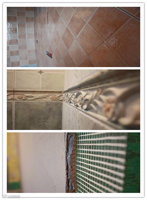 贴砖施工中,工艺平整美观,清清爽爽,整齐美观。第一遍挂网刷石膏,然后刷腻子