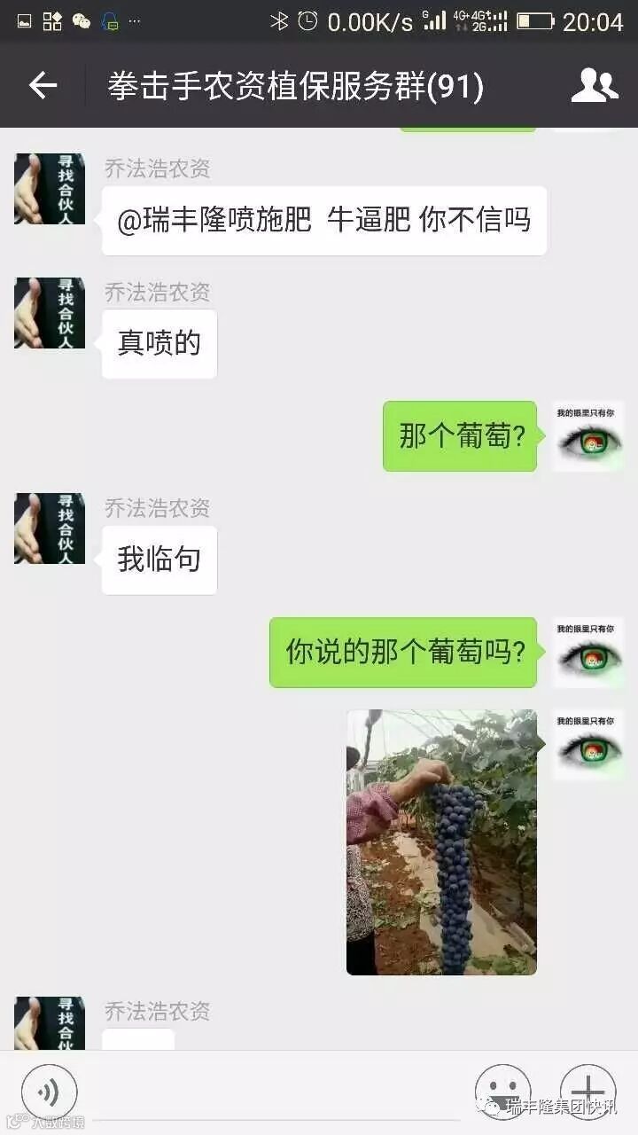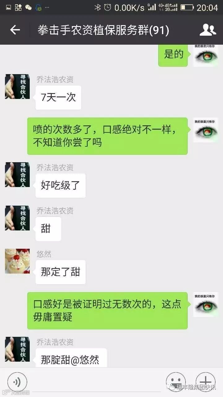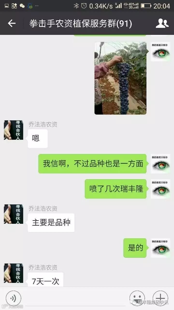 客户反映:喷施瑞丰隆后葡萄甜口感好