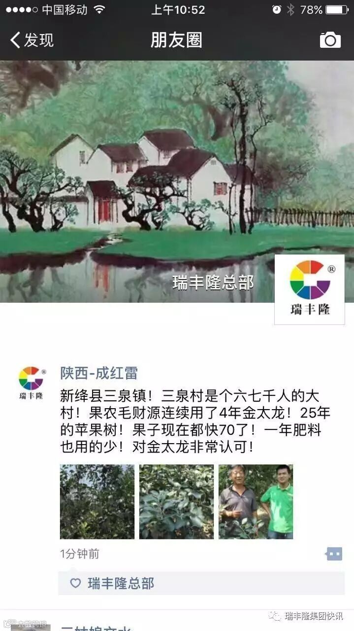 山西新绛县三泉镇三泉村是一个六七千人的大村!果农毛财源连续用了4年金太龙!自家的苹果树是25年的苹果树!可是现在果子都快70了!一年来肥料也用得少了!毛师傅对金太龙非常认可!