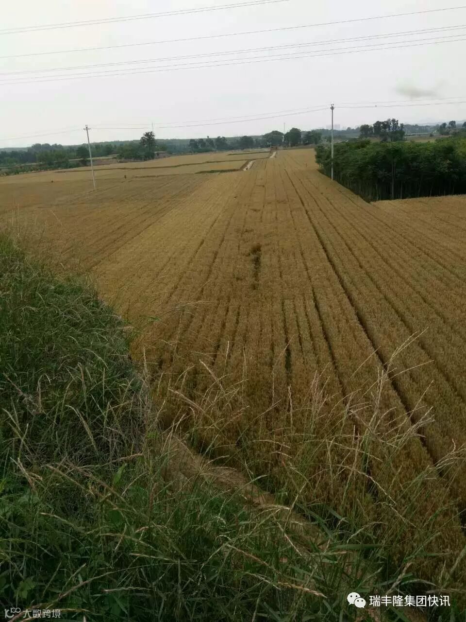 瑞丰隆集团快讯河北市场部的安经理推广使用金太龙十几年,尤其在小麦的使用方法上更是有自己独到的见解,下图就是他在小麦收获前拍摄的一张图片,再次用事实证明:使用了金太龙的小麦落黄好,从远处看,颜色和相邻麦田(没有使用金太龙)是不一样的!小麦的落黄好就是小麦的属性好,抵御干热风的能力好,没有受到干热风的影响,所以产量就会提高!