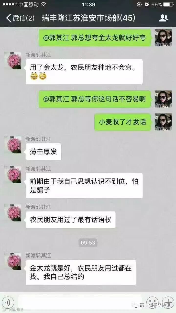 瑞丰隆集团快讯金太龙火不火,看看各区域经理和经销商的聊天记录,自然一目了然!