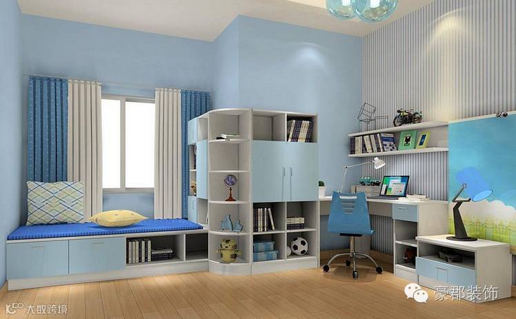 装饰:儿童房也讲究“轻装修重装饰”,尽量给孩子展示自己的空间,孩子喜欢的东西比如毛绒玩具、飞机模型或是自己的一件作品,是最可取的装饰。