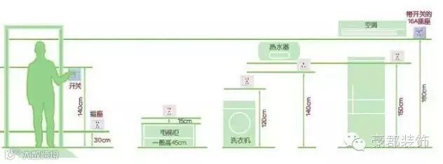5、洗衣机的插座距地面1.2m至1.5m;