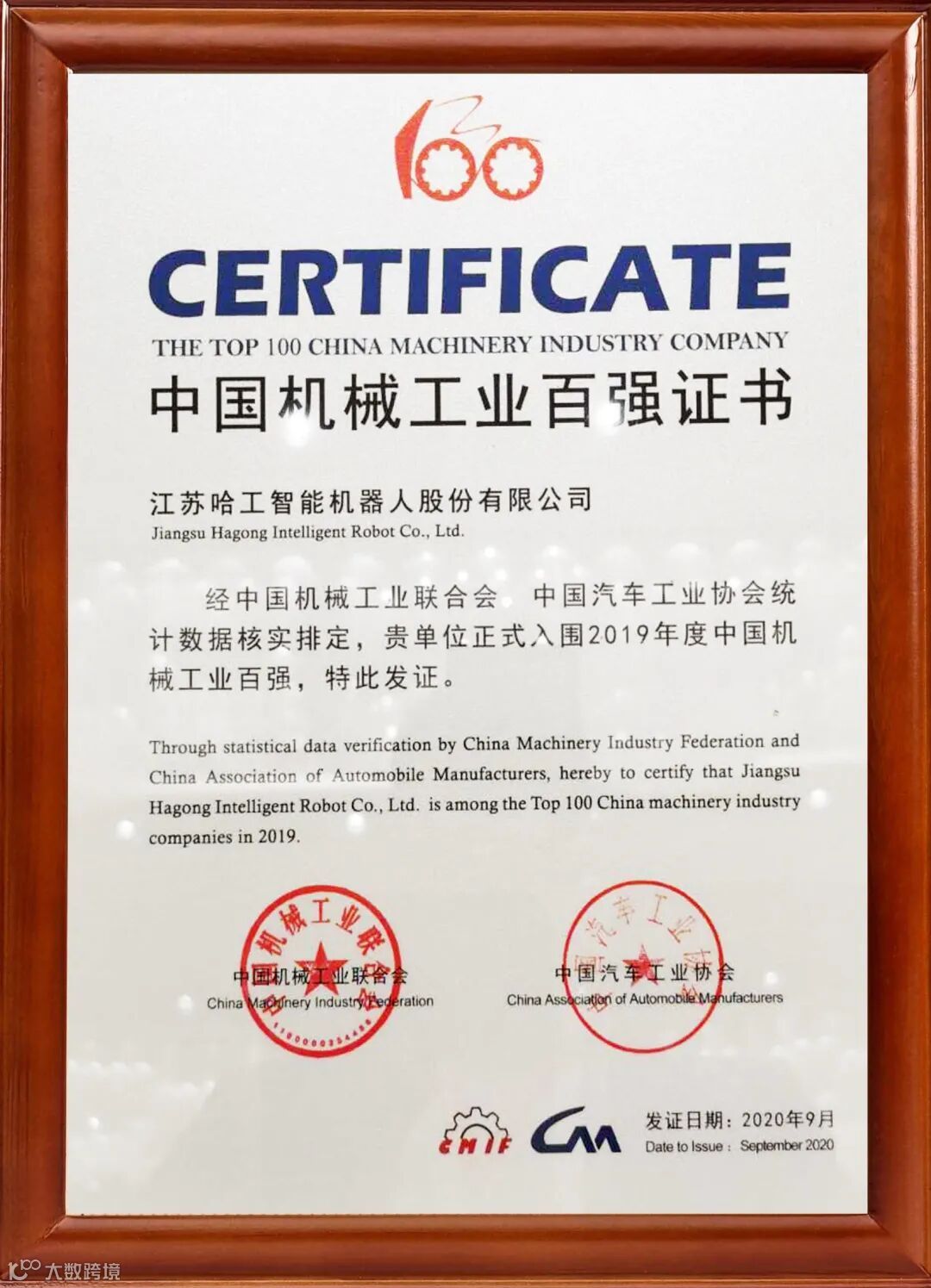 会上,中国机械工业联合会执行副会长陈斌、中国汽车工业协会总工程师兼副秘书长叶盛基代表主办方分别公布2019年中国机械工业百强、汽车工业整车二十强、零部件三十强企业名单。哈工智能凭借2019年树立的新型核心竞争力和在机械工业领域的综合实力,再次荣登中国机械工业百强榜。