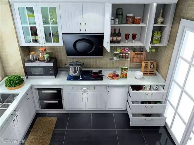 1.橱柜选择 最好用抽屉式的,拿取东西方便,一目了然。不要选柜门式的,拿东西弯腰特别累。抽屉柜优先配置在黄金区,利用细分隔件优化抽屉内部收纳。