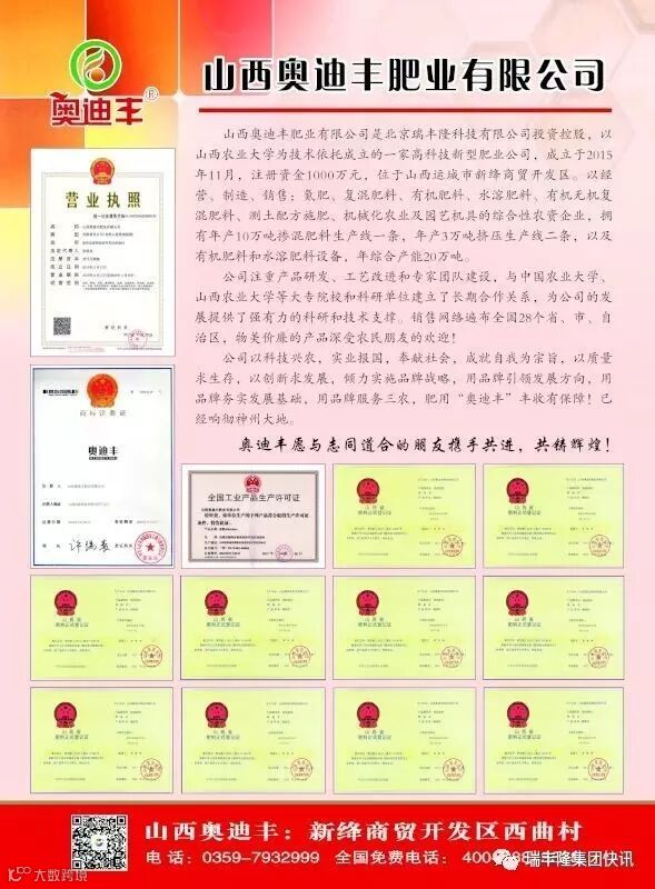 山西奥迪丰于昨日推出几款产品宣传彩页,为即将登陆市场的十款硝硫基智能配方肥做好单页宣传准备。