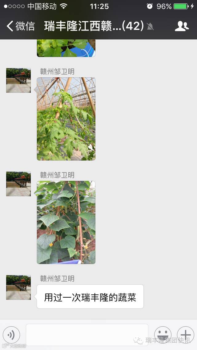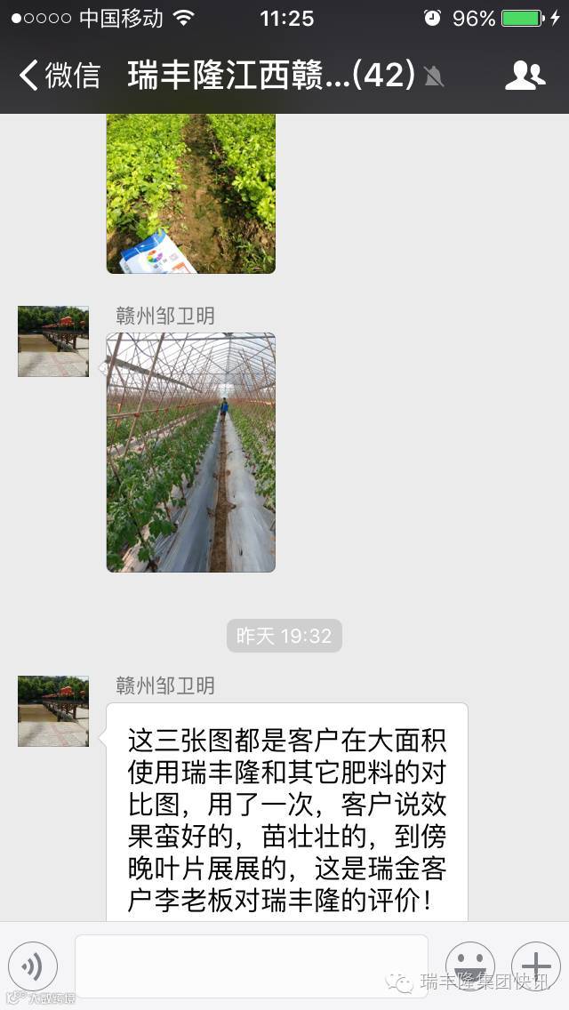 想看你够绿,想看你长壮,只要你用瑞丰隆,一颗心准备好,一次就好,保证让你看到效果!江西赣州市场部的叶菜喷施使用瑞丰隆超浓缩液体肥,只是一次,肥效快,作用强,一芽一叶,长势喜人。用户对于第一次使用效果反馈非常满意,苗壮叶展,对比其他肥料,效果显著优越!液体复合肥,请认准瑞丰隆!