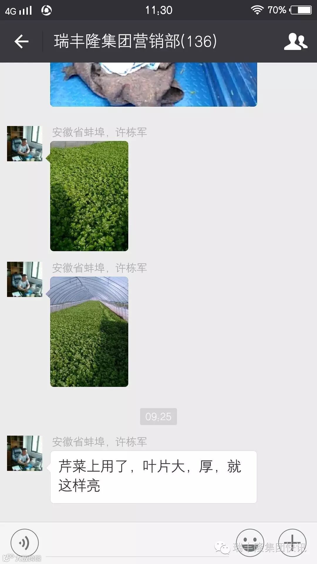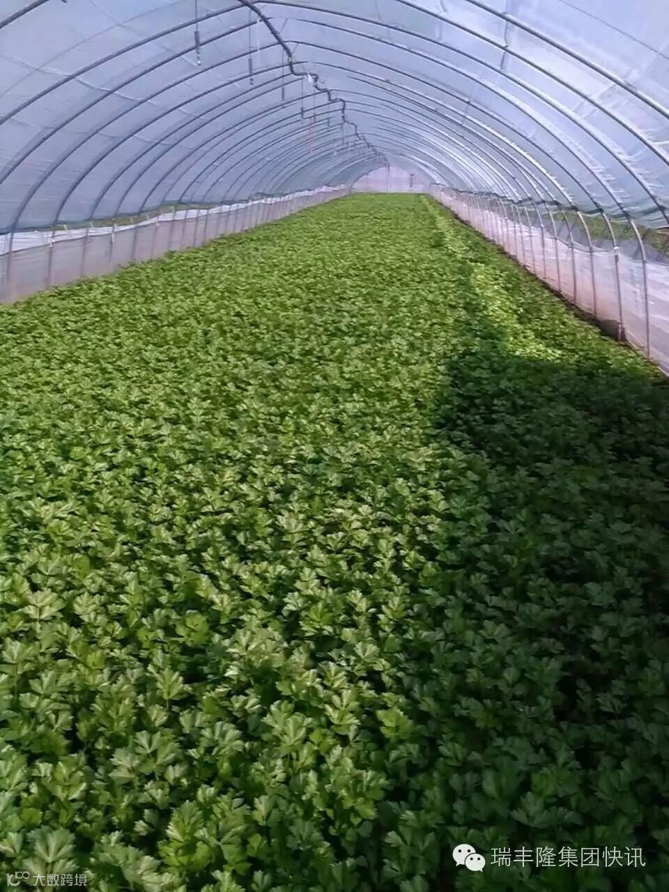 瑞丰隆在芹菜上的示范一直非常成功,这次客户反映:使用了瑞丰隆的芹菜,叶片大,而且厚,植株茂盛,整个棚里看起来就是这样亮!看图片满屏的绿意盎然,浓绿一片,确实让人眼前一亮!
