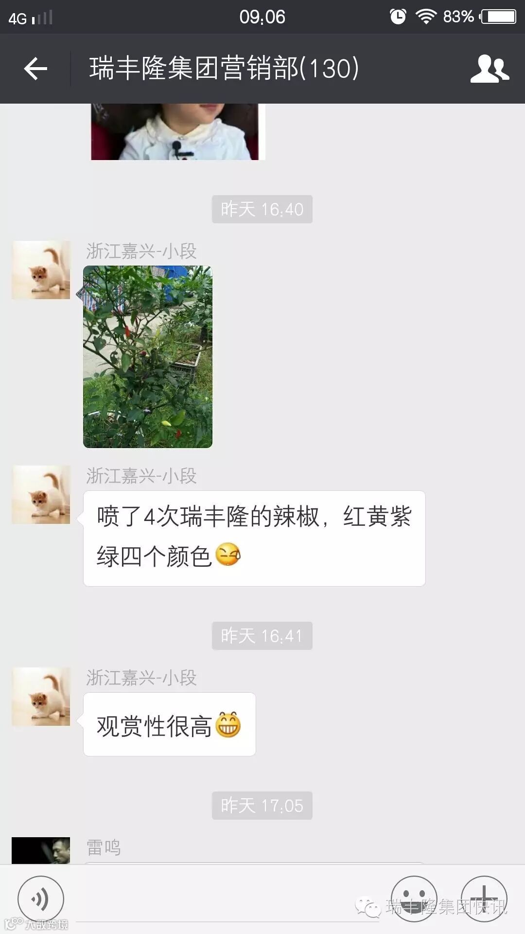 作物在不同的生长发育阶段,对营养成分的需求比例和需求量是有区别的。一般苗期需肥量少,开花结果期需肥量大,因此,在追肥时应做到前期苗小叶小适量喷,补足养分促苗壮,生长中后期多喷防早衰促高产。瑞丰隆全营养超浓缩液体喷施肥,在浙江嘉兴市场被示范到花菜和辣椒上,效果十分明显。瑞丰隆富含氨基酸和腐植酸这两种成分,腐殖酸能活化土壤,氨基酸能促进花菜对养分的吸收;而且瑞丰隆还含有铁、硼、锌、镁、钙等微量元素,这些元素对辣椒的影响深远,从而使辣椒中的花青素含量不同而呈现不同的颜色:红、黄、紫、白等。
