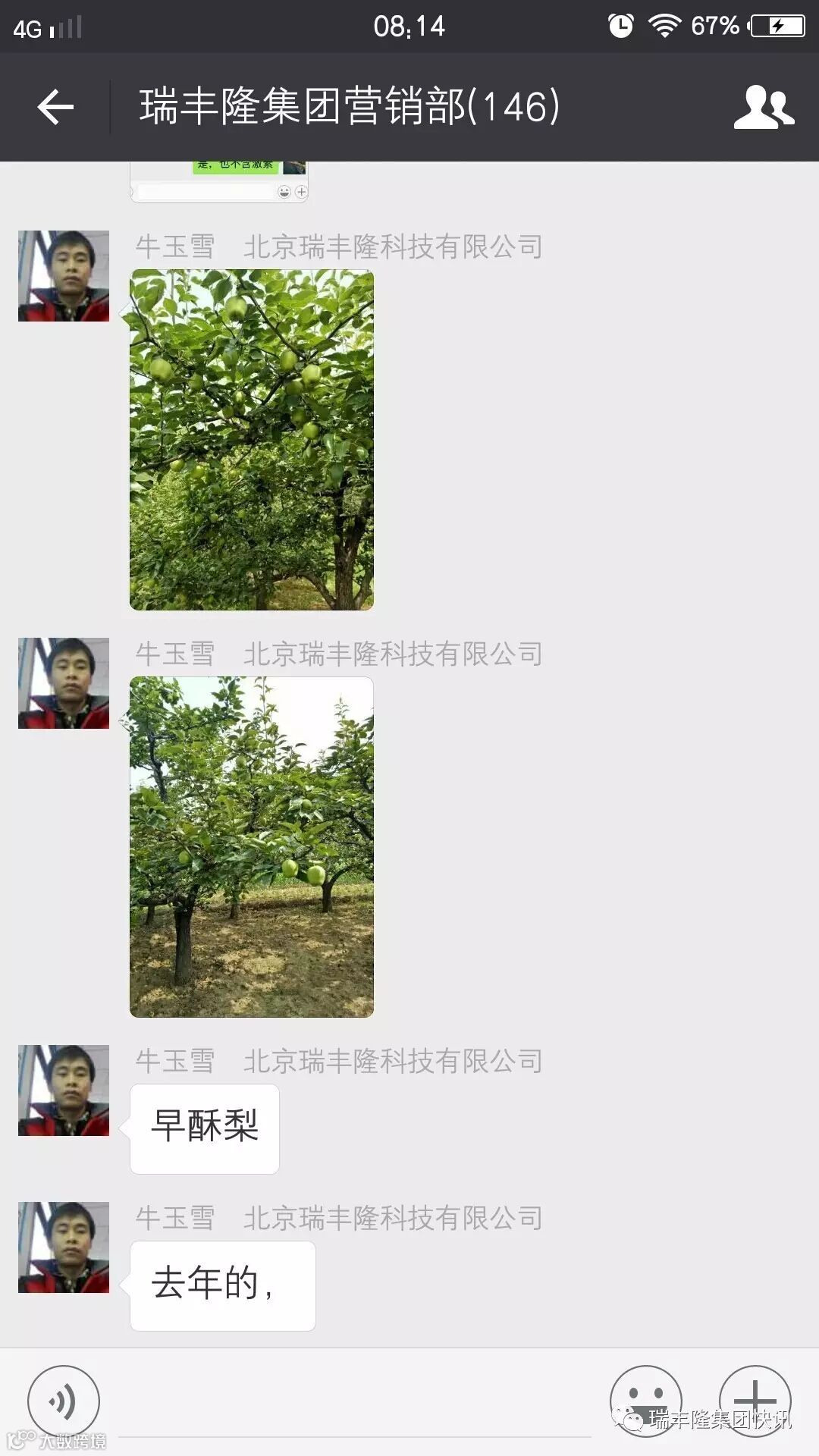瑞丰隆集团快讯酥梨喷施瑞丰隆的效果早在2016年就得到涿州市义和庄乡丰源庄村用户的肯定,应瑞丰隆其他市场部的要求,今天再次展示瑞丰隆超浓缩液体喷施肥在酥梨上的喷施效果图。下图是使用了果菜肥作为底肥,喷施了2次瑞丰隆后的酥梨,客户反映:酥梨提前一周成熟,效果比别人家的大一圈,而且口感好,不酸!