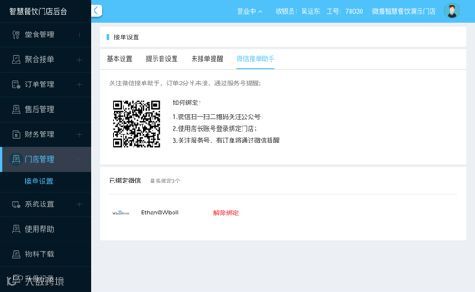 3、 每个门店可以绑定3个微信号,接收订单提醒;发送提醒消息是免费的;不想接收时候,可以在门店后台进行解绑。