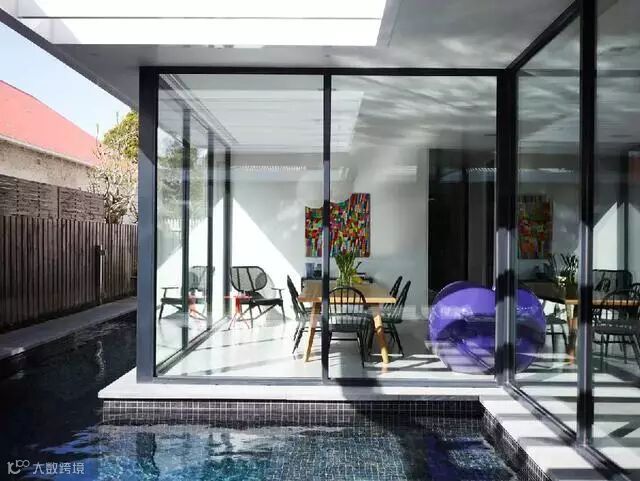 对一个老房子的改造可以带来一些新的可能性,例如带有落地窗的新空间。Canny Design所改造的这个位于澳洲的维多利亚时期老房子就因此焕然一新。室外青铜灰蓝的泳池所反射的自然光线和屋中的落地窗形成了新的联系,这样室内就不再阴暗了。
