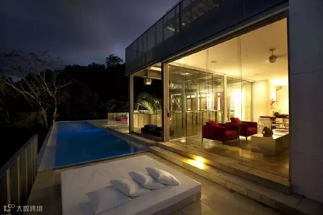 无论什么时候感觉到疲倦,需要到池边的太阳椅上躺一躺,都可以得到很舒适的体验。这是一所被落地窗和玻璃墙壁所包围的“玻璃房”,透过落地窗能够欣赏到无边泳池的全景。