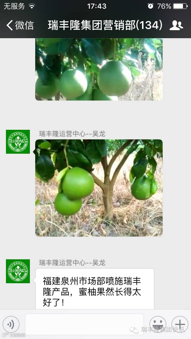 因为瑞丰隆福建泉州市场部得天独厚的地理和种植条件,也给了瑞丰隆超浓缩液体复合肥更大的施展空间。近日瑞丰隆在泉州蜜柚上的喷施效果好的不得了。因为蜜柚的整个生长季对根的要求很高,喷施瑞丰隆可以很好的减轻根部吸收的负担,也可以强根壮根。
