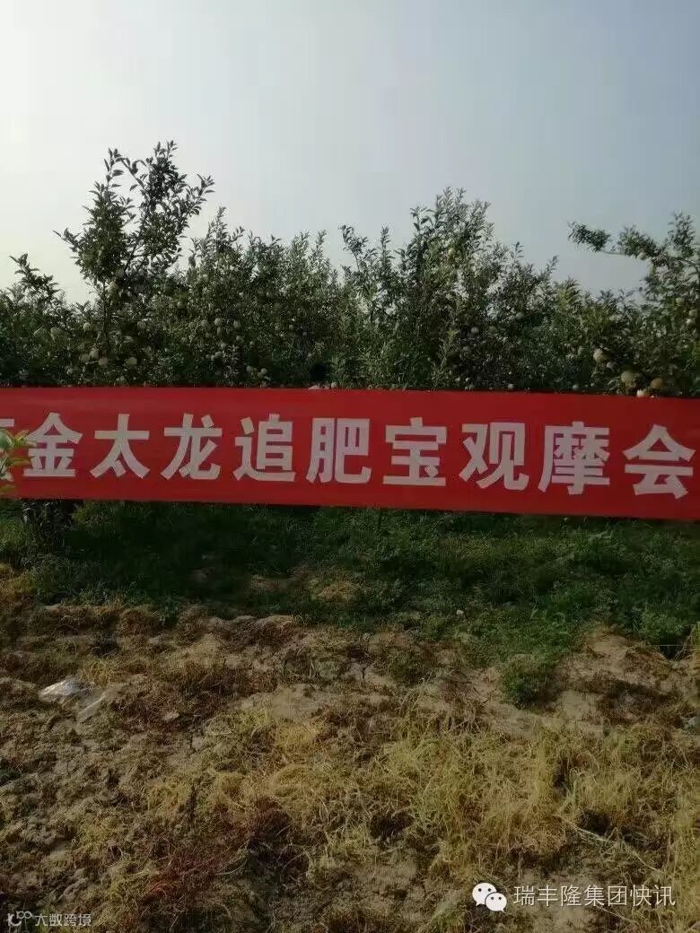 一直以来示范观摩会,肥效如何就得靠事实说话。8月3日,北京金太龙高科技有限公司陕西分公司经理成红雷来到咸阳三原县的种植基地,开了一场金太龙追肥宝首年使用暨效果展示会。来到现场的果农们表示:愿意选择金太龙、追肥宝进行合作,除了看中我们金太龙的服务之外,最直接的就是追肥宝的产品肥效。经现场观看,施用金太龙追肥宝的果树,叶色浓绿,枝繁叶茂,叶片厚,挂果多,大果多,着色好,果农们交口称颂。