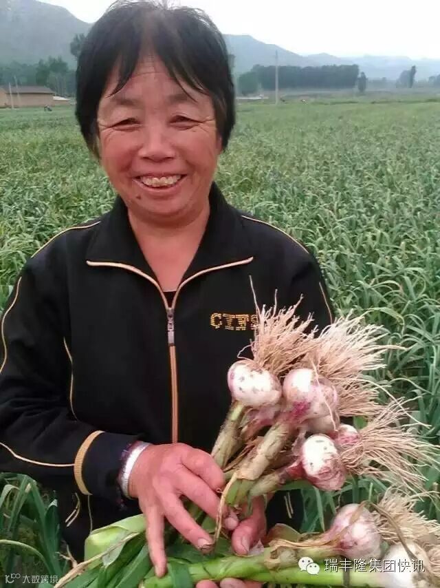 曲沃县北董乡南林交村,素有“万亩大蒜基地”美誉,经过县业务经理和村技术员的全面攻坚,瑞丰隆示范田建立已经初见成效。图为"瑞丰隆喷施肥“示范户高福有正在抽蒜苔,亩抽蒜苔达到1200斤,再有20天大蒜就有收获,结合今年“蒜你狠”行情,丰收在望,喜悦之情溢于言表!