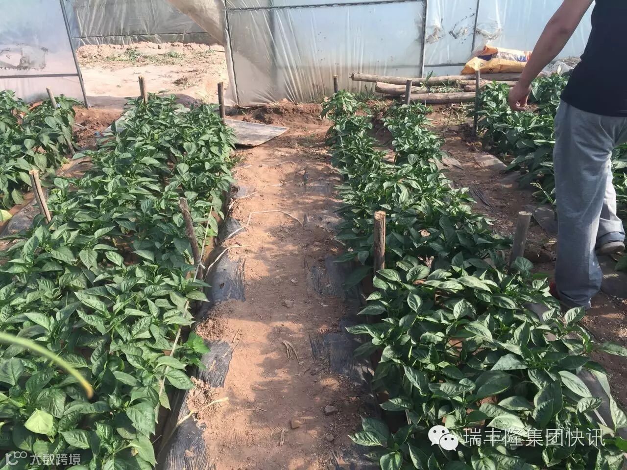上图图一中可以明显看出,青椒地里前半部分使用其他品牌肥料,青椒长势明显不如后半部分棚里使用“北京瑞丰隆液体喷施肥”青椒的长势。图二为前半部分使用其他品牌肥料青椒长势图。