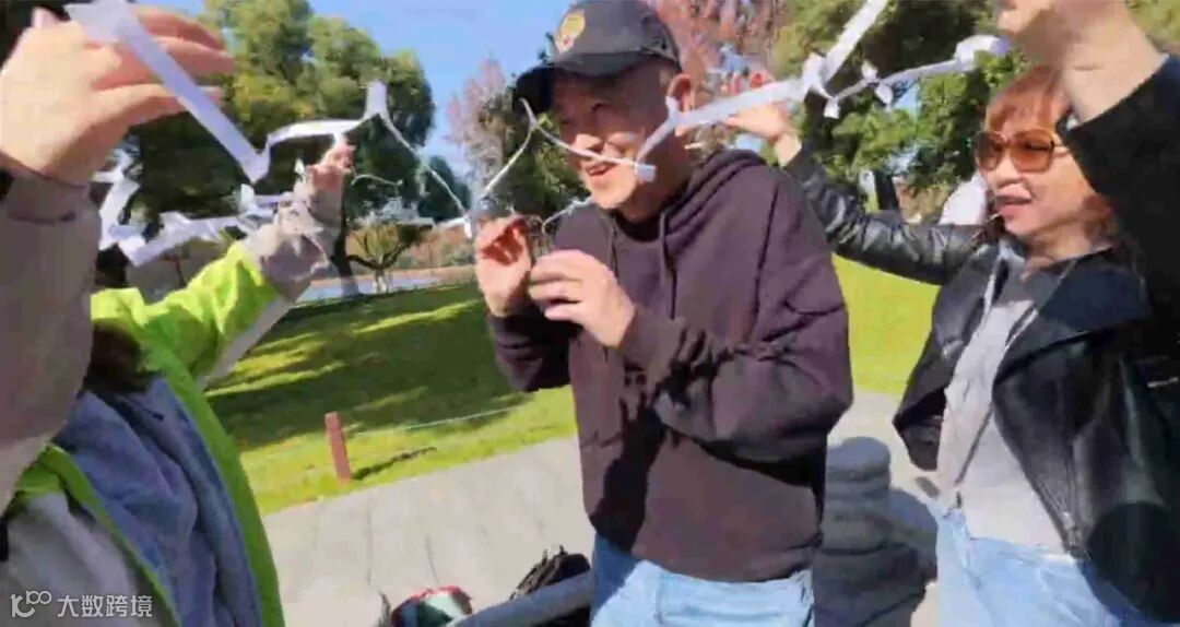 抵达行吟阁后,全员齐聚这座有着 70 年历史的三层方阁前,开启 "穿越 A4 纸" 全员挑战。领队提前讲解游戏原理:通过对折剪纸的几何技巧,将普通 A4 纸转化为可容纳成人穿过的闭合纸圈,随后将员工分为2组展开竞赛。