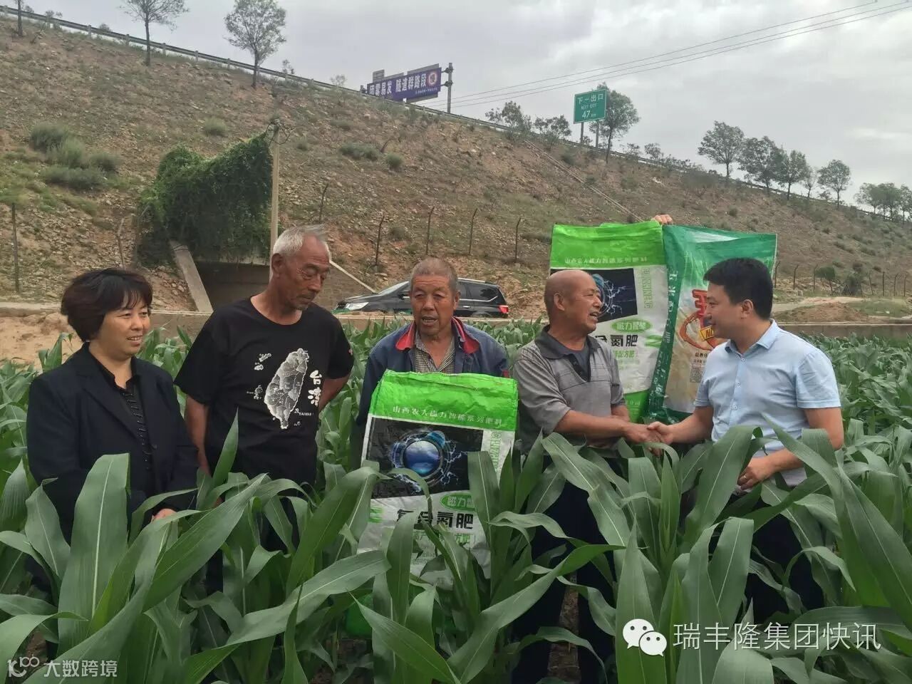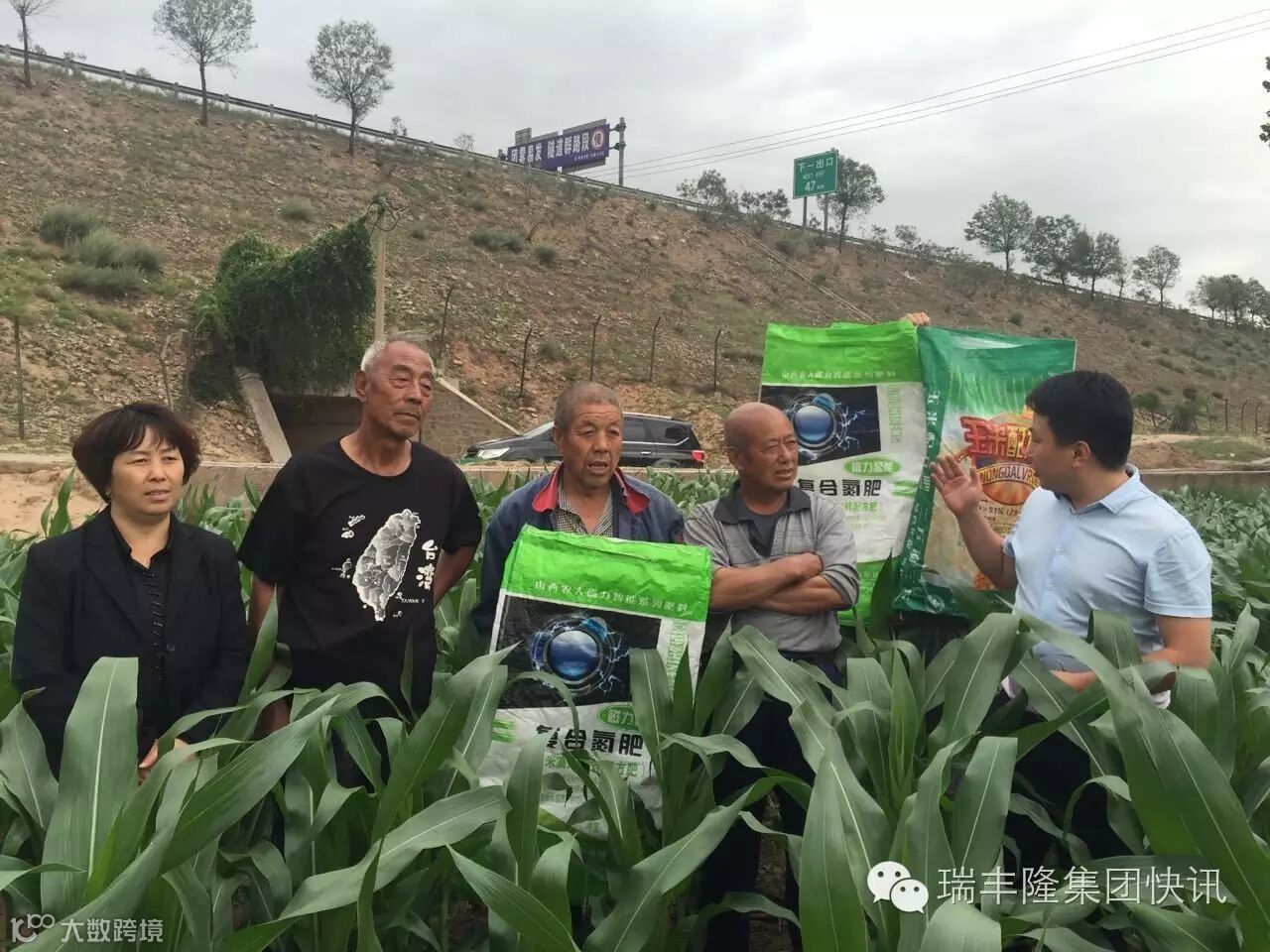山西农大绿荣科技营销中心随同太谷市场部经理,来到范村“绿荣玉米配方肥”示范田参看并查看玉米长势,受到了当地村民、村干部的热情欢迎。杨大哥今年4月20号播种,一亩半地使用了“绿荣玉米配方肥(28-15-8)”一袋,不到两个月的时间,叶片已经长到了第10叶,且植株高度及叶片大小明显优于旁边未使用绿荣肥料的地块,长势相当喜人。此情此景,村干部、现场老百姓纷纷对绿荣玉米配方肥拍手称赞,给予山西农大绿荣科技公司极高的评价。马上就到追肥时,杨大哥已经迫不及待地把项目补贴的复合氮肥追到自家玉米地上,期待着更多的发现和惊喜!让我们共同祝愿杨大哥今年的玉米地能够全面丰收!