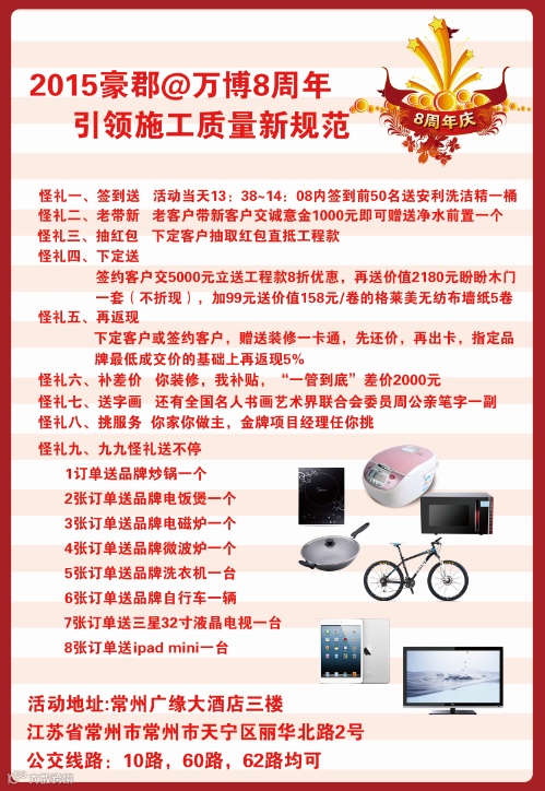 签约客户交5000元立送工程款8折优惠,再送价值2180元盼盼木门一套(不折现),加99元送价值158元/卷的格莱美无纺布墙纸5卷