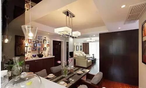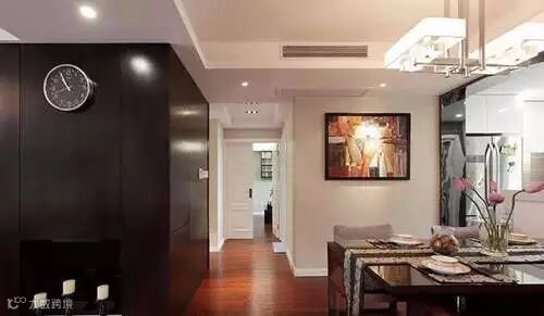 柜子左边一部分是进门玄关,一部分是作为餐厅的装饰柜,这样装饰看起来不显压抑,储藏空间有了,装饰性效果也还不错~
