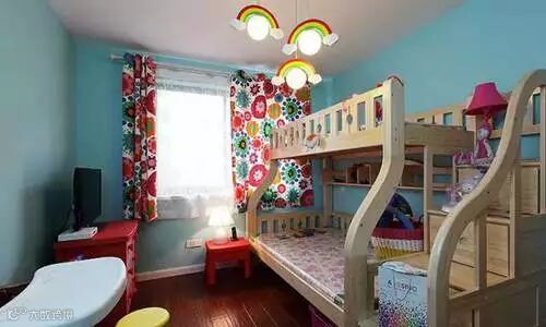 因为另外一间次卧改成了影音室兼书房,所以儿童房配置了高低床。
