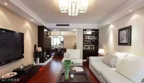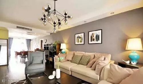 在现代简约风格的家居客厅中,灯具上可以选择造型别致的吊灯,如果是卧室最好选择吸顶式,因为那样会使人感到更有安全感。