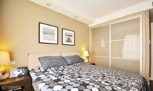 卧室衣柜移门选的很有现代感的磨砂玻璃和金属边框,非常有质感,但是价格也相对较贵哦~
