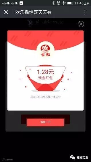 参加年会的人入场即可根据现场大屏幕提示,手机摇一摇企业的摇摇宝盒,点击“签到红包”领取固定金额的签到红包。