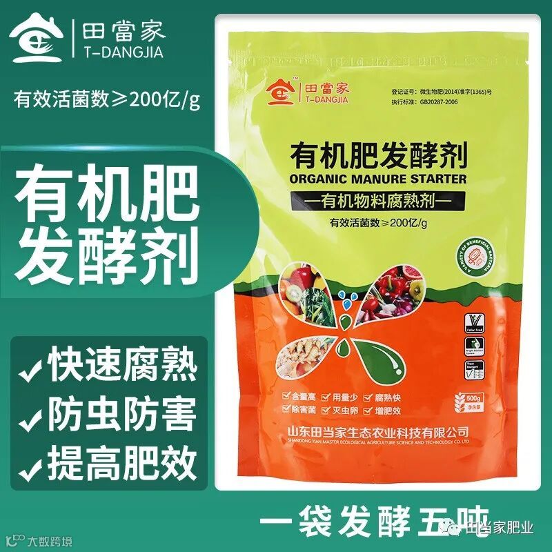 田当家有机肥发酵剂由能够强烈分解禽畜粪便的细菌,丝状真菌,酵母菌等十一种菌株及相关酶类复配而成。本品有效活菌数含量高,好氧发酵,分解蛋白质,粗纤维能力强,同时能够达到升温,除臭,消除病虫害,杂草种子和富集养分的效果。