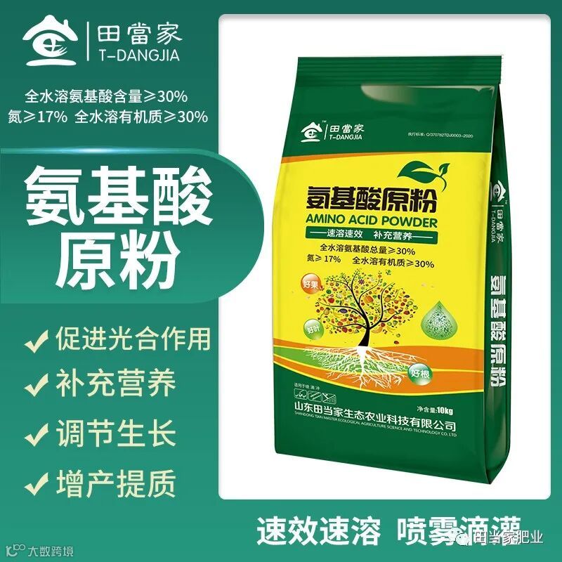 氨基酸原粉是高效氨基酸营养液定向浓缩提取物,为淡黄色粉末状。主要含有18种游离氨基酸和小肽,多肽物质及螯合状态中微量元素,全溶于水,具有螯合,粘合作用和营养功效。是做冲施肥,叶面肥,液肥,氨基酸生物肥以及各种菌肥的优质原料,更是促进动植物生长的最佳添加剂和基础原料。本品使用安全,生态环保,增产显著。