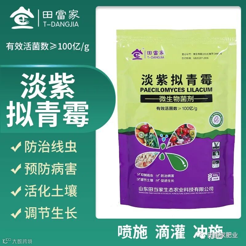 淡紫拟青霉菌属于内寄生性真菌,是植物线虫的病原菌,条件适宜时可以寄生与线虫的卵,幼虫,卵囊及成虫。此菌在代谢过程中能产生具有很强的杀灭线虫活性的物质,可直接用于线虫,减轻多种作物根结线虫。孢囊线虫,茎线虫等植物线虫病的危害。